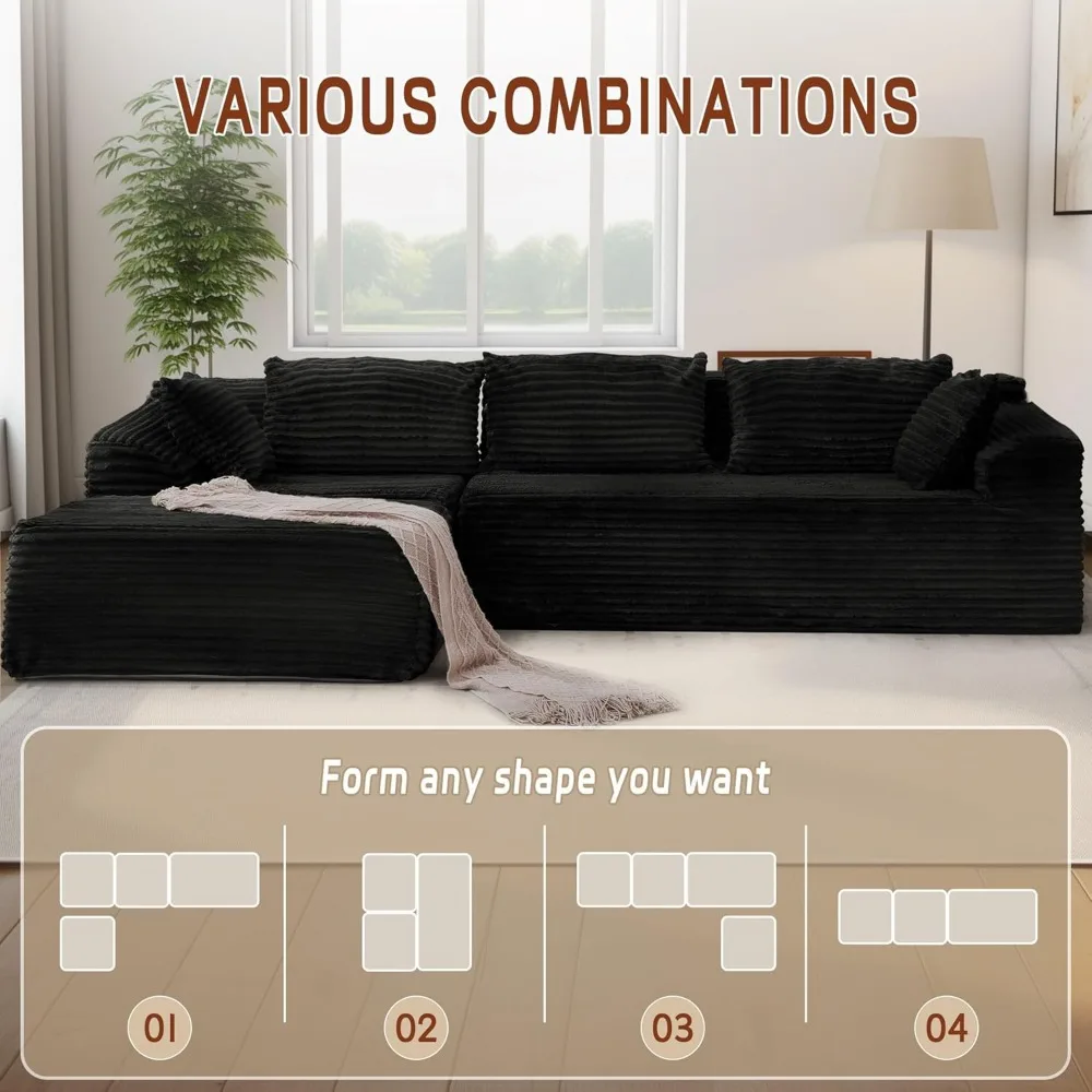 This L-shape modular sectional sofa brings comfort and style to any living room. Its cloud-like cushioning offers a soft and relaxing feel. The spacious chaise provides the perfect spot for stretching out and unwinding. Each section is designed to fit together smoothly for a clean, modern look. The sofa’s modular design allows you to rearrange the layout to suit your space. Its supportive cushions maintain their shape while staying cozy. The fabric is comfortable and inviting for everyday use. This piece works well for families, guests, or quiet nights at home. Its wide seating area offers plenty of room to relax. The modern silhouette blends effortlessly with a variety of décor styles. It is sturdy, durable, and built for long-term comfort. Overall, this sectional creates a welcoming centerpiece for any living room.